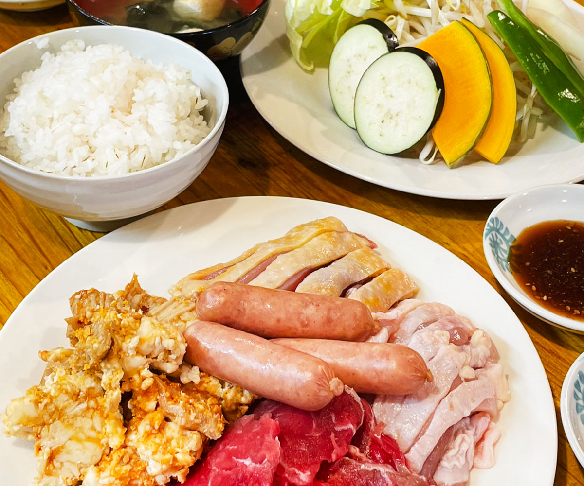 [若鶏、親鳥、牛肉、ホルモン、ウインナー]